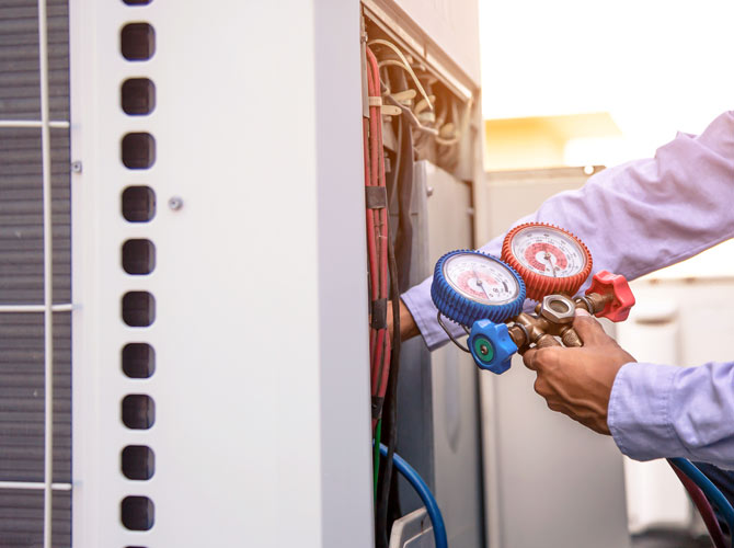 If they discover buildup in your system, your technician will remove it. They’ll also clean your coils and condensation pan. - Examine refrigerant.